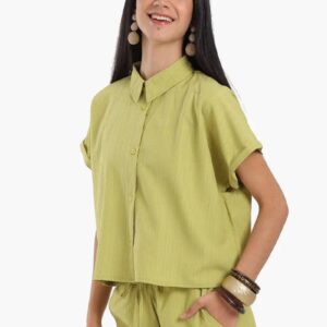 طقم قميص قصير بأكمام واسعة – لون ليموني