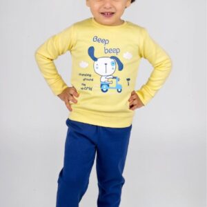 بيچامة أولادي شتوي بطبعة كلب وسكوتر – أصفر × أزرق
