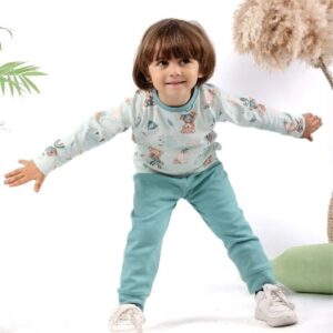بيجاما أطفال ناعمة - باللون الزيتي الناعم