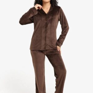 بيچامة نسائي قطيفة ناعمة – بني شوكولاتة