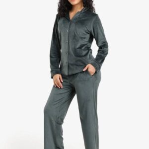 بيچامة نسائي قطيفة ناعمة – رمادي غامق