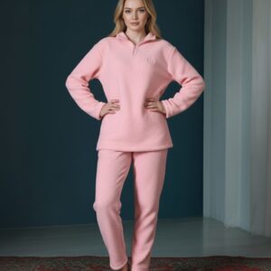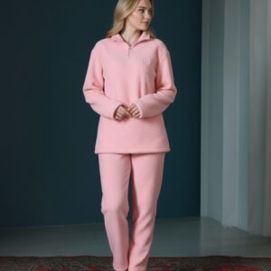 طقم شتوي حريمي بنقشة ناعمة وياقة كلاسيكية – موديل 65