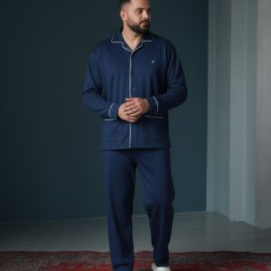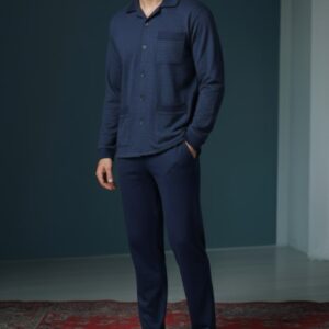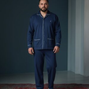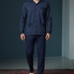 بيجامة رجالي شتوي زرار – لون كحلي بخامة ناعمة
