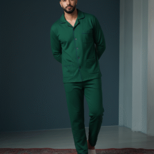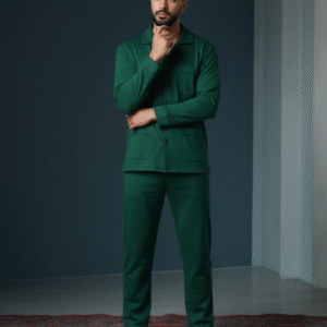 بيجامة رجالي قطيفة – لون أخضر بكم طويل