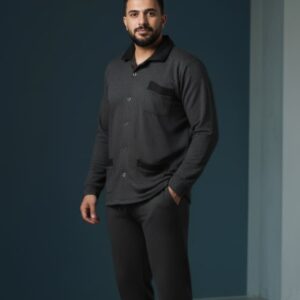 بيجامة رجالي شتوي – لون رمادي غامق بنقشة خفيفة