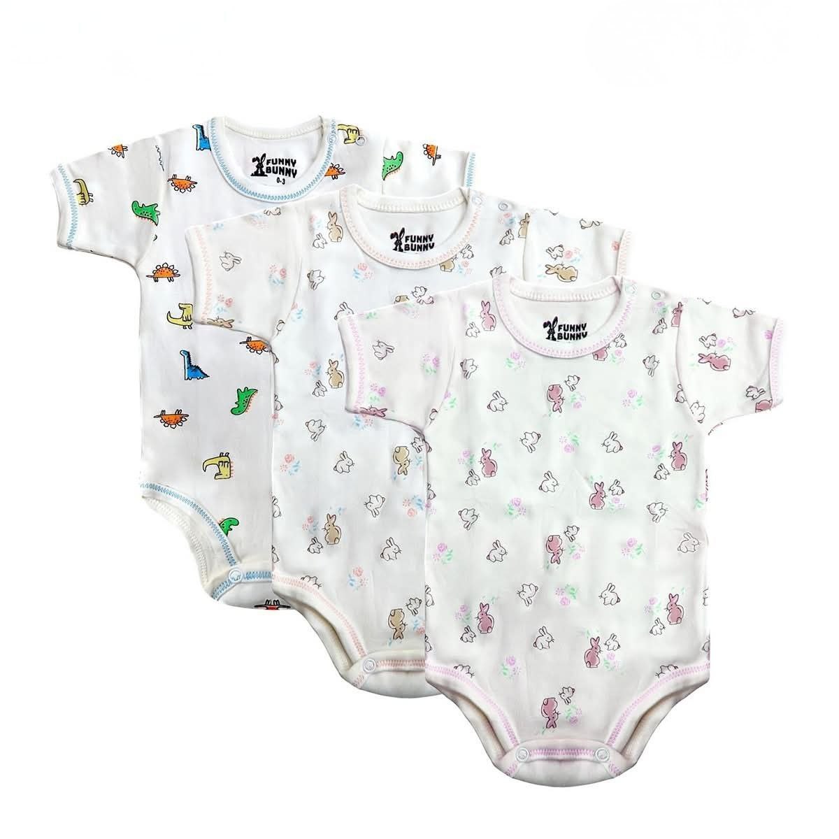 أضيفي لمسة من المرح والراحة لملابس طفلك مع مجموعة البادي القطني المطبوع من Funny Bunny.