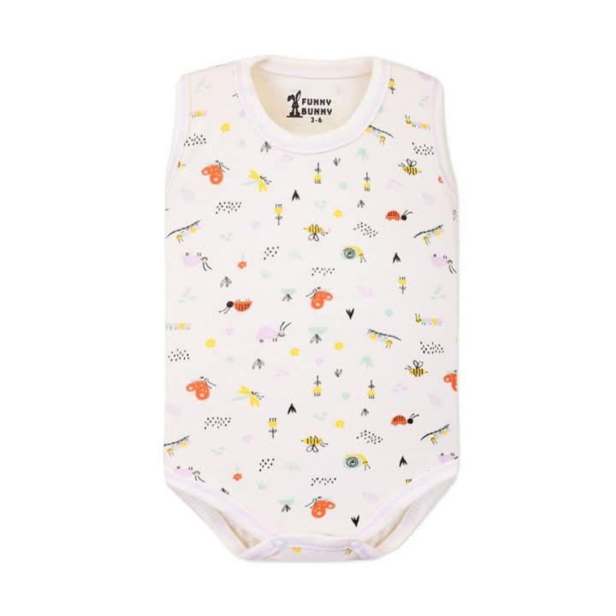 بادي الأطفال المصنوع من قماش ناعم ومريح، يضمن راحة الطفل أثناء اللعب أو الاسترخاء. يأتي البادي مع رسومات لطيفة لعدد من الحشرات مثل النمل والنحل، مما يضيف لمسة مرحة للمظهر اليومي. التصميم بدون أكمام يجعل هذا البادي خيارًا مثاليًا للأجواء الحارة.