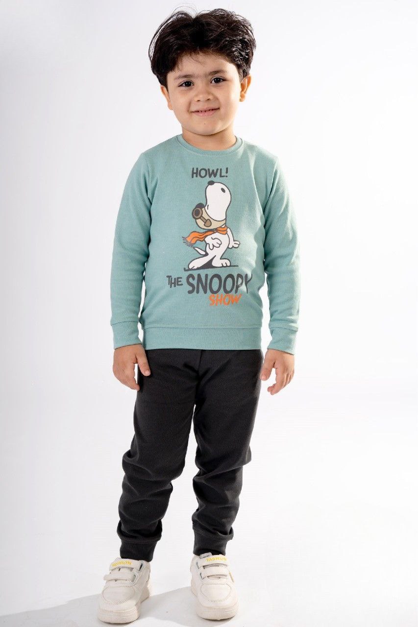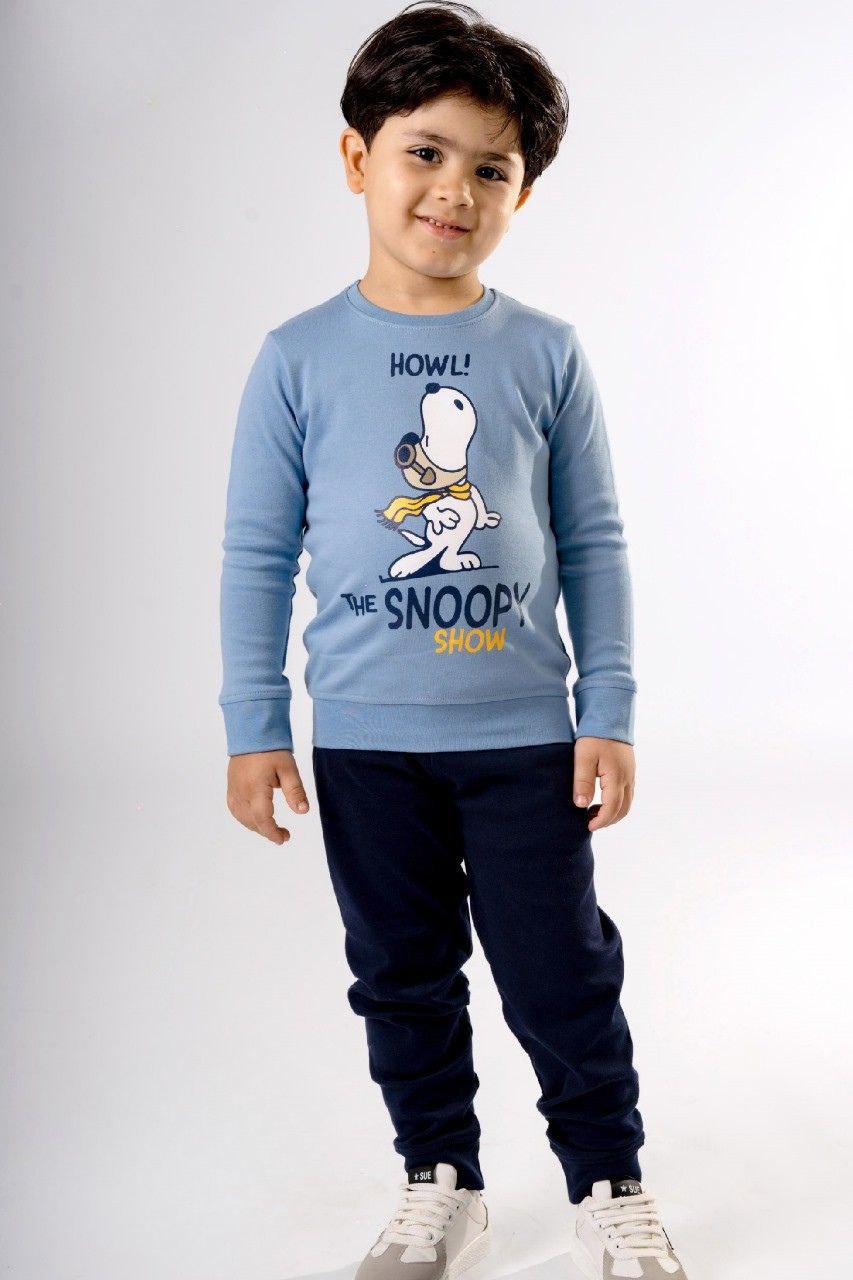 بيچامة شتوي أولادي بتصميم لطيف ومبهج مستوحى من شخصية Snoopy الشهيرة، تمنح طفلك مظهرًا مرحًا وراحة فائقة أثناء النوم أو اللعب. تأتي البلوزة بطبعة Snoopy محببة للأطفال، مع بنطلون بخصر مطاطي مريح.